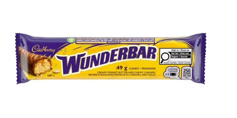 Enjoy the delicious taste of CADBURY WUNDERBAR in a convenient, single serving bar. CADBURY WUNDERBAR is a delightful combination of creamy peanut butter, light rice crisps, and delicious caramel, all enveloped by rich CADBURY chocolately goodness. Sweeth tooths and nut-lovers will adore the combination of the chewy sweet caramel and soft peanut butter centre in every bite of this delightful chocolatey candy bar. Relax and unwind after a long day with a sweet treat - perfect for me time. CADBURY WUNDERBAR is the ideal decadent treat to brighten your day. This bar is individually wrapped, making it easy to take on-the-go in the car, or to pack in the lunch box for a coffee break treat or after-meal dessert. This package contains one CADBURY WUNDERBAR 49g Single Size Chocolatey Candy Bar.