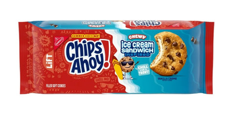 CHIPS AHOY! Chewy Ice Cream Sandwich-Inspired Cookies are a deliciously sweet treat inspired by the nostalgic flavors of a classic summertime favorite. These limited edition snack cookies combine the chewiness of CHIPS AHOY! soft chocolate chip cookies with a delicious creme-filled center.