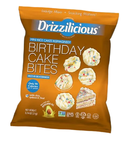 Our Drizzilicious Birthday Cake bites are mini rice cakes reimagined!