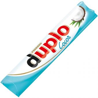 he best-selling chocolate bar in Germany is available in this variant with fine coconut milk cream. Delicate waffles offer crispy enjoyment, and the fine coconut note makes duplo Cocos an exotic delicacy under crunchy milk chocolate. Let the probably longest praline melt on your tongue in a special way.