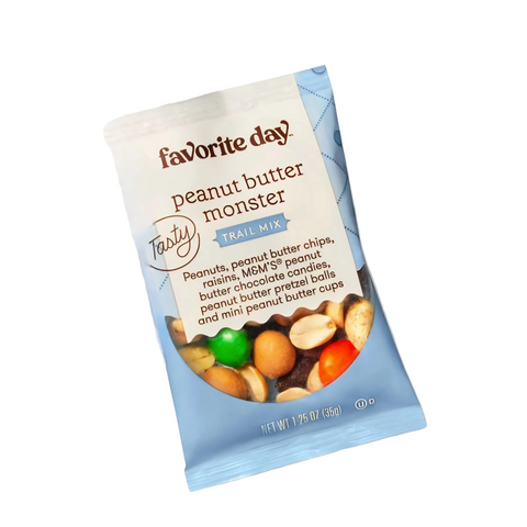 A delicious medley of peanuts, peanut butter chocolate M&M’S®, peanut butter cups, raisins, peanut butter pretzel balls & peanut butter chips.