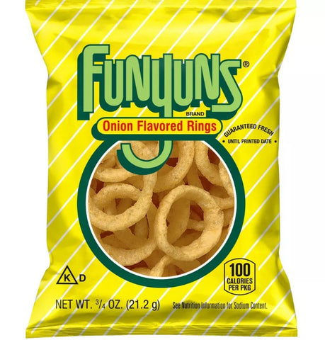 FUNYUNS Onion Flavored Rings are a deliciously different snack that's fun to eat, with a crisp texture and zesty onion flavor. Next time you're in the mood for a tasty treat that's out of the ordinary, try FUNYUNS Onion Flavored Rings. Try with your favorite dip for a taste sensation that runs rings around other snacks.