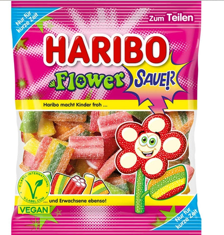 Colorful, floral, and wonderfully sour – Haribo Flower Sour Vegan are a real eye-catcher on the candy aisle. These cheerfully shaped, flower-shaped fruit gums impress with intense fruit notes and an extra-sour coating that provides the signature Haribo kick. Made entirely without animal gelatin, they offer complete enjoyment for anyone who wants to snack on vegan foods. With their soft texture and striking shape, they're ideal for sharing, decorating, or simply enjoying on their own. A colorful treat with a sour bite and fruity variety.