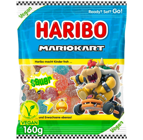 As strong as Bowser and incredibly delicious – the HARIBO Mario Kart Edition in Sour! These iconic treats, inspired by the world of Mario Kart, come in fruity and delicious flavors and are coated in a sour candy. Available for a limited time only! © Nintendo