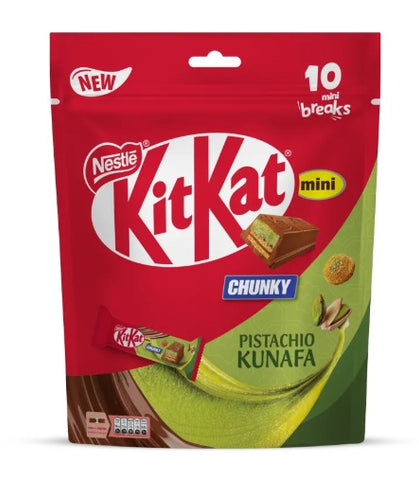 Kit Kat Chunky Pestachio Kunafa Wafer Bars Covered with Family Milk Chocolate with Pistachios, Kunafa and Crispy Biscuits