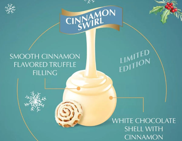 Remind a friend or loved one of how much they mean to you this holiday season with LINDOR Cinnamon Swirl White Chocolate Truffles. With festive holiday packaging these white chocolate candy truffles are great for sharing, gifting and giving as stocking stuffers for family and friends. LINDOR truffles also add sparkle to your holiday candy dishes. This creamy chocolate specialty features a cinnamon flavored truffle center surrounded by a decadent white chocolate shell with cinnamon.