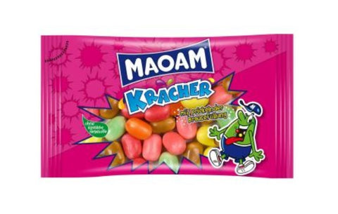 Palate explosion. Maoam firecrackers offer a fruity-crunchy chew with that special something. Because the chewy candies convince with the taste of orange, strawberry, apple, lemon, raspberry and cola and also offer a firm dragee shell that first wants to be bitten through before the tingling core with the effervescent filling is revealed.