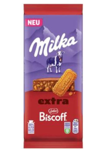 Delicate, caramel and with a special crunch. The Milka Extra Biscoff Lotus combines the well-known Milka Alpine milk chocolate with the unique spice and caramel note of the crispy Lotus Biscoff biscuits. The combination of creamy chocolate and fine biscoff pieces ensures a balanced interplay of sweet, spicy and slightly crunchy. Every bite brings together the familiar Milka melt and the characteristic taste of the Belgian cult biscuit – for those who love classic chocolate with a modern twist. A special treat for real Biscoff fans.