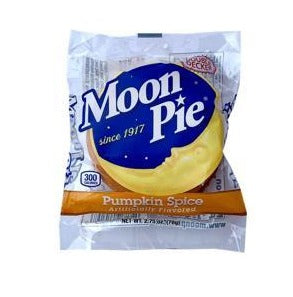 Delicious MoonPie snack is made of two crisp graham crackers sandwiched around a marshmallow center, then covered with a layer of Pumpkin Spice flavored coating.