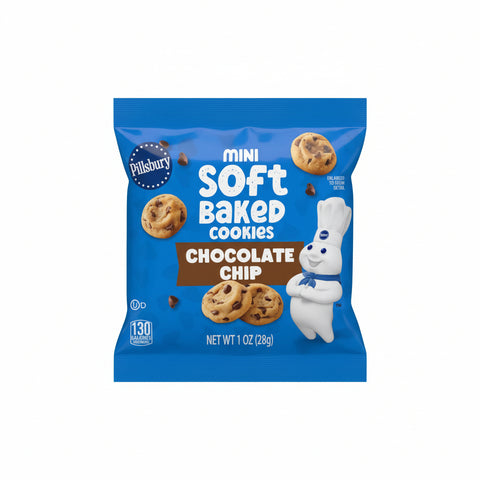 Soft, sweet, and ready to eat! Pillsbury Mini Soft Baked Chocolate Chip Cookies feature real chocolate chips and have the perfect chewy, soft baked texture. Ideal for kids and adults alike, each portable snack bag delivers all the yumminess you expect from Pillsbury in bite-sized, ready to eat treats. Pack Pillsbury Chocolate Chip Mini Soft Baked Cookies as a quick and easy lunch box surprise or on the go bite.