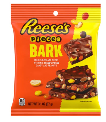 Get ready to enhance your snacking moments with REESE'S PIECES Bark. It's the classic REESE'S PIECES peanut butter candy you know and love, shrunk to a miniature size and baked inside milk chocolate bark pieces with crunchy peanuts.