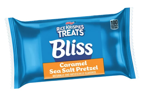 Take a bite of sweet, salty, crispy perfection. Enjoy timeless Rice Krispies Treats snacks now topped with candied sea salt pretzels and layered with caramel-flavored chips. You’ll love the delicious indulgence in Rice Krispies Treats Bliss Caramel Sea Salt Pretzel bars. They’re mouthwatering snacks perfect for both kids and adults with crunchy and chewy in perfect balance. From the tasty toppings to the layer of creamy caramel-flavored coating on the bottom, treasure every craveable bite when you need a just-for-you moment; It’s a 100 calorie bar made with no high fructose corn syrup, perfect for a lunch snack.