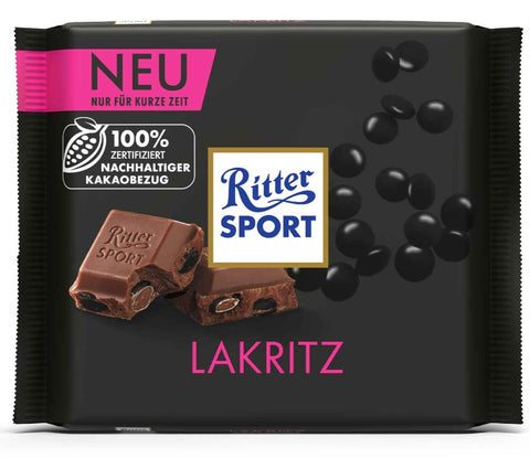 A special combination: Ritter Sport Liquorice combines creamy milk chocolate with small, spicy liquorice pieces. The contrast between the sweet chocolate and the intense liquorice note makes for a unique taste experience. Perfect for lovers of extraordinary chocolate creations - a moment of pleasure that surprises and inspires!
