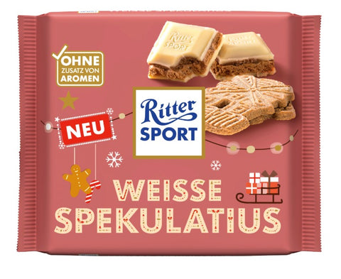 The Ritter Sport White Speculoos combines the best of delicate white chocolate, wintery cocoa cream and a crunchy butter biscuit with speculoos flavour. The result: a heavenly festive taste experience in the typical square shape – perfect for gifting, sharing or simply enjoying yourself.