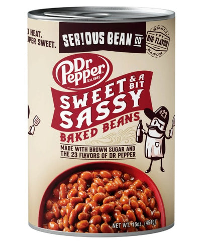 SERIOUS Bean Co Sweet and a Bit Sassy Dr Pepper Baked Beans are a grilling hit with its blend of 23 flavors, Dr Pepper has long been a secret ingredient among top BBQ pitmasters. The 23 original flavors of Dr Pepper give this batch its name and its amazing flavor. Sweet and sassy success. SERIOUS Bean Co Dr Pepper Baked Beans feature a sweet and sassy taste with no high fructose corn syrup - perfect for entertaining family and friends. Better than other baked beans because we don't do boring.