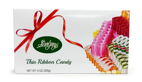 Holiday ribbon candy shines with its assorted festive flavors and bright colors. Carefully handcrafted in small batches with lots of care, it's almost too pretty to eat. Each 9 oz box includes six classic flavors of cinnamon, peppermint, raspberry, lemon, lime, apple and orange, Sevigny's thin ribbon candy is an unforgettable holiday tradition! Great holiday baking decoration. A beautiful addition to your holiday table landscape! All of our items are produced in an Allergen-Free facility. All of our items are Gluten Free and Kosher certified.