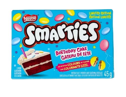 Nestlé Smarties Birthday Cake: a special edition of the classic chocolate treat, featuring the beloved milk chocolate Smarties infused with the sweet, nostalgic flavour of birthday cake. Each piece is wrapped in a colourful candy shell in shades of yellow, pink, and blue, bringing a celebratory pop of colour and fun to any occasion. Perfect for parties, sharing, or enjoying whenever you want a taste of celebration, this treat combines the crunch of Smarties with the buttery, vanilla notes of birthday cake for a truly festive bite.
