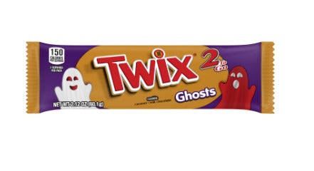 We have delicious proof that ghosts are real! Twix Ghosts are a spooky twist on an old favorite that's so easy to love. Decadent milk chocolate surrounds a thick layer of gooey caramel supported by a ghost-shaped cookie. These frightfully festive treats are sure to delight all the little ghouls that may arrive at your door this year looking for cool Halloween candy they can show their friends. They may be shaped like scary ghosts, but they taste so sweet! Now in a double pack!