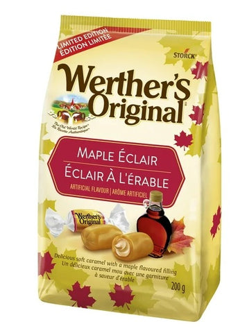 Werther’s Original® Maple Éclair Caramel Candies are a soft and creamy caramel with a maple flavoured filling. They are made using The Old World Recipe® with high-quality ingredients. A recipe that became a family tradition handed down through generations. Indulge in and share these delicious caramels with your family and friends by filling your candy bowl.